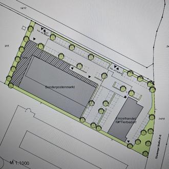 Mit den beantragten Abweichungen soll dem am Standort ansässigen Thomas Philipps Markt die Möglichkeit eröffnet werden, sich flächenmäßig neu aufstellen und einen zeitgemäßen Neubau zu errichten. Mit dem geplanten Vorhaben soll die Neubebauung und Nachverdichtung des bereits eingeführten Standortes sowie die Ansiedlung des Fressnapfs ermöglicht werden.