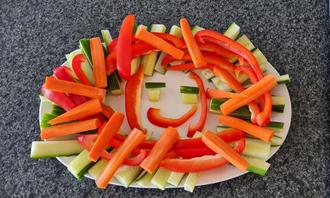 Pizzaschnecken, Gemüsesticks mit Kräuterquark, Erdbeerquark, Müsliriegel und Smoothies.