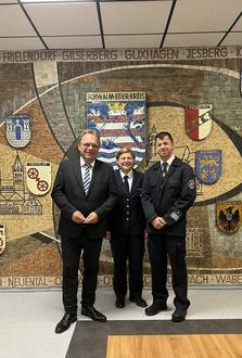 Landrat Winfried Becker überreichte Matthias Poppitz kürzlich seine Ernennungsur-kunde und führte ihn in das Amt des Kreisbrandmeisters ein. Der 40-Jährige Homberger ist zudem Wehrführer der Kernstadtfeuerwehr in Homberg (Efze) und übernimmt als Kreisbrandmeister den Aufsichtsbezirk für Homberg (Efze) und Knüllwald.