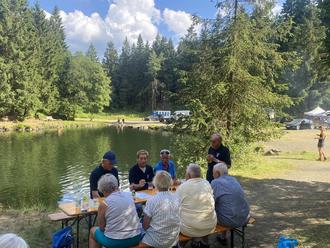 Am Wochenende fand in der Partnergemeinde Floh-Seligenthal (Thüringen) das traditionelle Bergseefest statt. Aus Körle waren dort 15 Leute zu Gast, die mit dem Bürgerbus und zwei privaten PKW angereist waren. Die Veranstaltung wird von der Gemeinde Floh-Seligenthal und der Nachbarstadt Tambach-Dietharz organisiert, wobei für Speisen und Getränke dieses Jahr der Fußballverein Floh zuständig war. Für die Musik sorgten die Feuerwehrmusikanten. Der Bergsee liegt in unmittelbarer Nähe zum Rennsteig auf 780 m Höhe und ist wegen der schönen Kulisse mit ca. 30 m hohen Felswänden ein sehr beliebtes Ausflugsziel. Entstanden ist der See aus einem Steinbruch, der sich mit Wasser füllte, als eine Ader angebohrt wurde. Die Partnergemeinde Floh-Seligenthal liegt in der Tourismusregion Thüringer Wald und bietet zahlreiche Übernachtungsmöglichkeiten, so dass sich vor allem für Wanderfreunde und Mountainbiker ein Besuch rund ums Jahr lohnt. Infos unter www.floh-seligenthal.de