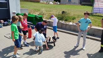 Bei der Brandschutzerziehung vermitteln Frauen und Männer der Freiwilligen Feuerwehr aus Körle und Empfershausen unter anderem, welche Aufgaben die Freiwillige Feuerwehr erfüllt und wie man sich im Brandfall richtig verhält. In Versuchen testeten die Kinder selbst, welche Materialien leicht entzündlich sind und sie experimentierten mit verschiedenen Brandlöscharten. Die Kinder erkundeten auch die Einsatzfahrzeuge und setzten in einem Rollenspiel einen Notruf ab. Bei der Wasserentnahme aus einem Hydrant, dem Weiterleiten des Wassers mit einem Strahlrohr und dem Zielspritzen auf Fallklappen, waren alle mit Begeisterung dabei.