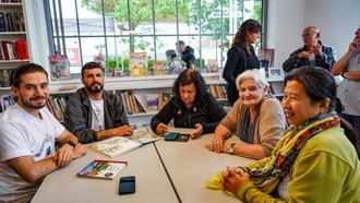 Viele der Gäste nutzten den Eröffnungstag direkt, um einige Bücher auszuleihen. So auch Arlett Sauermann mit ihren Kindern Anouk (5) und Tilly (1). “Jetzt hat die Bücherei für uns einen perfekten Standort. Man braucht kein Auto mehr.” Etwa einmal im Monat besuchen die Sauermanns die Bücherei und leihen dabei immer gleich einen ganzen Schwung Bücher aus. “Die ganze Familie wird hier fündig.” Tochter Anouk hat sich direkt zwei Bücher mit Einhorngeschichten herausgesucht.