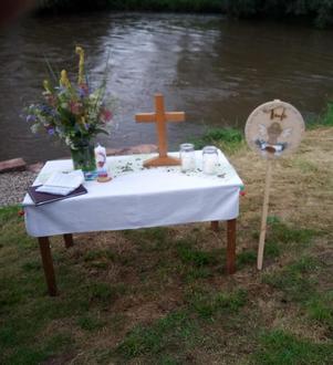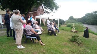Mit viel Hingabe hätten die beiden einen wunderschönen Taufplatz entstehen lassen. Und so konnte die kleine Anna direkt an der Fulda getauft werden. Mit den Gästen wurde noch eine Tauferinnerung gefeiert, indem jeder, der wollte, ein Wasserkreuz in die Handfläche und einen Segen zugesprochen bekam.