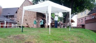 Ganz so einfach stellte sich die Umsetzung beim ersten Mal allerdings nicht dar. Zunächst musste nämlich ein geeineter Ort gefunden werden. Die Einstiegsmöglichkeiten in die Fulda seien sowohl in Wagenfurth als auch in Lobenhausen „eher schwierig“, sagt Daniela Hoff. „Und so haben Annerose Dußl und Günter Freudenstein vom Kirchenvorstand gemeinsam überlegt, wo die geeignetste Stelle für einen Taufplatz sein könnte und nach Ortsbegehungen haben wir uns für den Platz gegenüber der Radfahrscheune in Lobenhausen entschieden.“