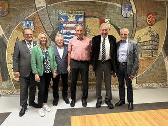 v.l.: Landrat Winfried Becker, Bürgermeisterin Susanne Schneider(Guxhagen), Klaus Martin Reinbold, Frank Döring, Klaus Döring, Ulrich Wiegand