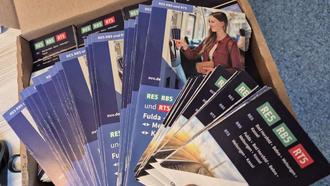 Die praktischen Faltpläne zu den Fahrtzeiten der RE, RB und RT5 können kostenlos mitgenommen werden.