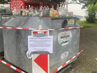 Die Altglas-Container an der Berglandhalle sind derzeit völlig überfüllt und können daher nicht mehr genutzt werden. Grund für die unregelmäßige Leerung sind Personal- und Technikprobleme bei der Entsorgungsfirma Fehr.