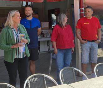 Zu Beginn der Jubiläumswoche wurden die Frühschwimmer und Dauergäste, die seit Jahrzehnten dem Freibad die Treue halten, zum gemeinsamen Frühstück mit Bürgermeisterin Susanne Schneider, André Degenhardt (Vorsitzender DLRG Ortsverband) und dem Freibad-Team eingeladen. Familie Tübek, die Pächter des Freibadkiosks, haben für die Gäste ein leckeres Frühstück ausgerichtet. Nach der Begrüßung durch die Bürgermeisterin stießen alle auf das Jubiläum an. Weitere Gäste waren die Ehrenamtlichen des Digitalarchivs, eine Arbeitsgruppe, welche alte Fotos, Videos und historische Dokumente digital aufbereitet. Nachdem sich alle gestärkt hatten, zeigte das Digitalarchiv einen Film aus Fotoaufnahmen und Videosequenzen der Eröffnung des Freibades von vor 50 Jahren. Der Film mit einer Länge von ca. 25 Minuten wurde mehrfach angehalten, da die begeisterten Zuschauer einzelne Personen wiedererkannten und es zu einem regen Austausch über die „alten Zeiten“ kam.