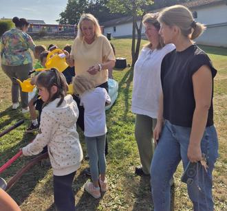 Die Grundschule Guxhagen ist eine Umweltschule und bietet ihren Schülern viele Möglichkeiten, die Umwelt zu entdecken und zu schützen. So stand die Aktion ganz im Zeichen von Umweltbewusstsein und Mitmach-Lernprojekten. Die Erstklässler durften tatkräftig beim Einpflanzen und Gießen helfen und auch unser Freibad-Team packte beim Einpflanzen mit an.