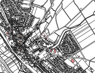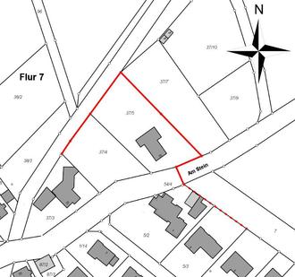 Lageplan mit eingezeichnetem Grenzverlauf M. 1:1.000
