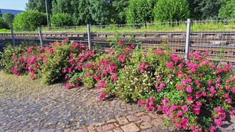 Einen echten Hingucker gibt’s an der Kuhgasse direkt an den Bahngleisen. Dort blühen jeden Sommer dank der guten Pflege von Waltraud Paar ganz prächtig pinkfarbene und weiße Beetrosen – wenn auch jetzt im September schon viel der Pracht verblüht ist. „Die Rabatte pflege ich bestimmt schon seit zehn Jahren“, schätzt Waltraud Paar, die an der Kuhgasse wohnt. Sie entfernt regelmäßig das Unkraut, sorgt im Frühjahr und Herbst für einen frischen Schnitt und mit regelmäßigem Düngen für diese üppige Blütenpracht, die sie hier vor ein paar Wochen fotografiert hat. Hilfe bekommt Waltraud Paar bei der Pflege der Rabatte auch regelmäßig von Ingrid Schild.