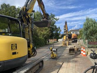 Im Bereich der Mühlenfeldstraße wird der neue Regenwasserkanal in einem herkömmlichen Kanalgraben gebaut, während der Abschnitt bis zur ehem. Mühle per Spülbohrung eingebracht wird.