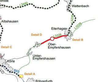 Nach diesem Bauabschnitt sind laut Hessen Mobil die Arbeiten an der Landesstraße unter Vollsperrung abgeschlossen. Ausgeführt werden im Anschluss nur noch Untersuchungen im Bereich Eiterhagen unter halbseitiger Sperrung mit Ampelregelung.