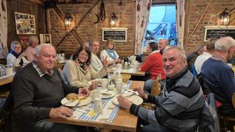 Zunächst stand aber nach der Ankunft in Willingen ein gemeinsames Frühstück auf dem Programm. In der Dorf Alm mitten im Willinger Ortszentrum wartete ein abwechslungsreiches Frühstücksbuffet auf die Teilnehmer. Anschließend ging es für die einen zu einer Führung in der Willinger Glasbläserei. Lutz Erbeck hatte sich bereiterklärt, den Bürgerbus an diesem Tag zu fahren und begleitete die Gruppe zur Manufaktur. Zur selben Zeit fuhr eine weitere Gruppe mit der Seilbahn auf den Ettelsberg. Auf dem mehr als 830 Meter hohen Berg besichtigten die Seniorinnen und Senioren gemeinsam mit Bürgermeister Mario Gerhold beispielsweise den Hochheideturm und ließen sich später auf Siggis Hütte Erbsensuppe und das ein oder andere kühle Bierchen im Trockenen schmecken.