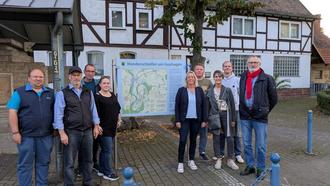Ortsbeirat Guxhagen mit Bürgermeisterin Susanne Schneider an der Informationstafel der neuen Wandschleifen.