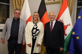 Landrat Winfried Becker mit Bürgermeisterin Susanne Schneider und Miroslaw Mantaij vom Partnerschaftsverein der Landkreise Schwalm-Eder und Pila in Polen
