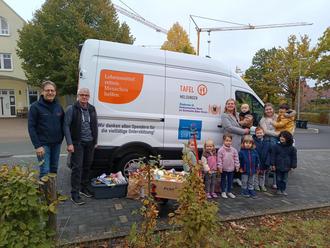 Am 07.10.2025 war es soweit: Die Mitarbeiter der Melsunger Tafel Otto Giese und Karl Müller kamen zu uns und holten mit dem Transporter der Tafel die gesammelten Spenden ab.