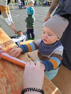 Außerdem durfte jedes Kind eine lange Karotte mitbringen. Diese haben wir an einer Station ausgemessen, um so einen Karottenkönig oder eine Karottenkönigin ernennen zu können.