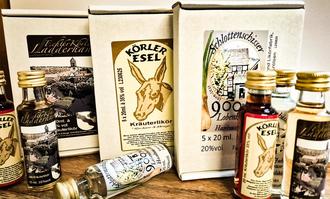 Körler Esel, Ladderhans und Schlottenschisser: Mittlerweile gibt es drei exklusive Körler Schnäpse, die im Rathaus erhältlich sind. Produziert werden alle bei Kirchner und Menge in Bad Arolsen.