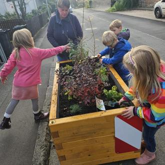 Nachdem die Schüler ihre handwerklichen Fähigkeiten unter Beweis gestellt hatten und die Kübel fertiggestellt waren, übernahm der Bauhof das Auskleiden und Befüllen der Kübel mit Pflanzgrund sowie die Beschaffung der Pflanzen. Begleitet wurde das Projekt auch von Frau Schott, der Leiterin der Grundschule Guxhagen, die ihre Unterstützung zusagte. Im Rahmen der Ferienbetreuung des Ganztagsangebotes bepflanzten die Grundschüler, gemeinsam mit Beate Lutz vom Betreuungspersonal, die neuen Kübel.