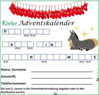 Aktuelles aus Körle - Mitmachen und gewinnen: Der Körler Adventskalender