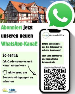 Für Nachrichten, die Sie besonders schnell erreichen müssen, gibt es jetzt den neuen WhatsApp-Kanal der Gemeinde Körle. Damit bekommen Sie wichtige Nachrichten direkt aufs Smartphone.