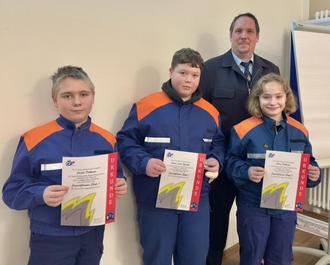 Jugendfeuerwehr, Jugendflamme Stufe 1, von rechts nach Links: Justin Dithmar, Jason Luca Egenolf, Alina Dithmar mit Jugendwart Christian Emmeluth
