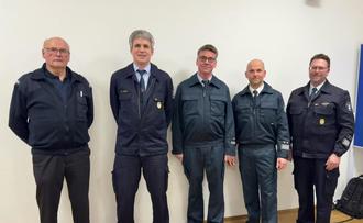 Bild neue / alte Wehrführung + Vertreter Ehren und Altersabteilung und GBI von rechts nach links: Karl Goller, Mirko Hast, Marc Freudenstein, Andreas Jacob, Jens Schenkluhn