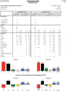 Das vorläufige Ergebnis für die einzelnen Wahlbezirke sowie das vorläufige Gesamtergebnis für die Gemeinde Guxhagen finden Sie hier: