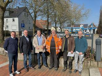 v. l. n. r.: Heiko Volz-Leiter Hauptamt, Bürgermeister Claus Steinmetz, Herr Siebert- Jobcenter Fritzlar, Stefan Pelz-Kläranlage Wabern, Ulrich Lohs-Bauhof Wabern, Hagen Mälzer-Leiter Bauhof Wabern