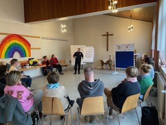 Zum zweiten Mal bereits fand im neuen Familienzentrum ein Erste-Hilfe-Kurs am Kind im Februar 25 statt. Kursleiter Björn Thiel, Vorsitzender des DRK-Ortsvereins Wabern und geschulter Ausbilder für dieses spezielle Kursangebot, informierte die TeilnehmerInnen zu vielfältigen Maßnahmen, die bei unterschiedlichen Notfällen zu tun sind.