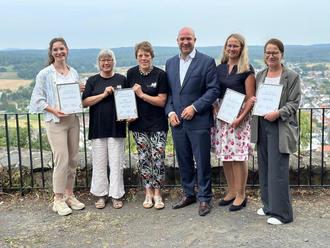 Landwirtschafts- und Heimatminister Ingmar Jung und die Preisträgerinnen der LandHeldin 2024, u.a. Regina Ziegler-Dörhöfer (2.von rechts) aus Schwalmstadt-Allendorf