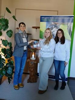 In diesem Jahr haben sich die Schülerinnen und Schüler der beiden Standorte Homberg und Fritzlar entschieden, die Erlöse an den ambulanten Kinder- und Jugendhospizdienst in Fritzlar zu spenden. Am 18. Februar 2025 besuchten unsere Schulsprecherin Lea-Marie Körber und die Verbindungslehrerin Saskia Behr den Hospizdienst. Sie wurden herzlich empfangen und hatten die Gelegenheit, bei einer Tasse Kaffee mit der Koordinatorin Birgitta Priester und der ehrenamtlichen Mitarbeiterin Ilona Kruckow über die wertvolle Arbeit des Dienstes zu sprechen.