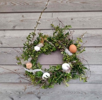Buchsbaum, Weide- und Birkenzweige, Efeu, saftiges grünes Moos und andere Natur- und Dekomaterialien sind zum Experimentieren genügend vorhanden.