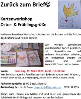 Wenn Sie ebenfalls eine Idee haben, was Sie im Familienzentrum & Generationentreff anbieten können, freuen wir uns auf Ihren Anruf 05683/5009-35 oder eine email an familienzentrum@wabern.de.