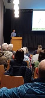 Tim Zier stellte die Erschließungsmaßnahmen in unserer Gemeinde dar. Neben einem kleinen Neubaugebiet in Uttershausen, bei dem acht Bauplätze bereitgestellt werden sollen, sind in Hebel bereits fünf Bauplätze komplett erschlossen und können verkauft werden. Hierbei auch kleinere Grundstücke, die für das Aufstellen von Tiny-Häusern geeignet wären. Darüber hinaus sollen auch in Zennern und in Udenborn Bauplätze entstehen.