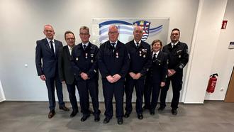 Landrat Winfried Becker verleiht Goldene Brandschutzehrenzeichen an verdiente Einsatzkräfte der Freiwilligen Feuerwehr Wabern