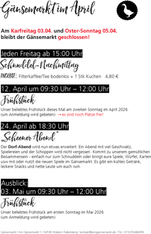 Unser beliebtes Frühstück dieses Mal am zweiten Sonntag im April 2026.