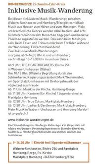 Anmeldung und Infos bei Britta Olesin, Tel.: 0157 50457334 britta.olesin@wabern.de