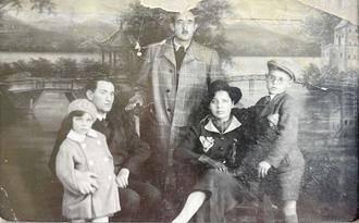 Flucht nach Shanghai (China) in Jahr 1939: v.l.n.r.: Ilse Heilbronn, Leopold Heilbronn, Moses Heilbronn, Lina Heilbronn und Alex Heilbronn, Leopold und Moses wurden in Hebel geboren (Fotografie; Mark Synderman, USA)