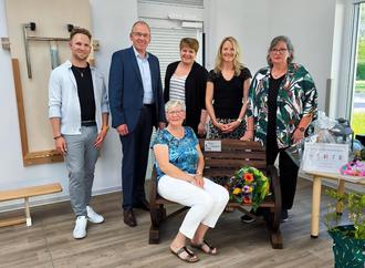 v.l. Florian Stabler - Stellv. Leitung der KiTa „Schatzkiste“, Claus Steinmetz – Bürgermeister, Elisa Gehrke – Sachbearbeiterin KiTa-Verwaltung, Nadine Roßbach – Personalrat der Gemeinde Wabern, Kerstin Stieglitz –Leitung der KiTa „Schatzkiste“, vorne: Petra Schaller
