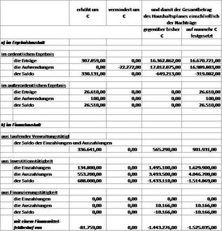 Der Finanzhaushalt weist einen Zahlungsmittelbedarf von 1.525.035 € aus.