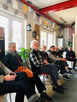 Über 30 Personen waren in den Wohnhof mitten in der Altstadt von Treysa gekommen, um das gemeinschaftliche Wohnprojekt kennenzulernen. Georg Schlamann, Initiator des Wohnhofs und Sophie Bernhardt, eine weitere Mitbewohnerin stellten das Wohnprojekt vor und berichteten über ihre Erfahrungen. Der Wohnhof ist nach dem Modell des Freiburger Mietshäusersyndikats organisiert. Dadurch wird die Immobilie langfristig dem Spekulationsmarkt entzogen und garantiert den Mietern eine stabile Wohnsicherheit und eine günstige Miete. Im Wohnhof kann sich die Bewohnerschaft mit ihren unterschiedlichen Fähigkeiten einbringen, sei es bei den baulichen Vorhaben, der Verwaltungsarbeit, bei der Organisation von Veranstaltungen oder im großen Garten des fast 5000 Quadratmeter großen Grundstücks. Einmal in der Woche trifft man sich, um alle Dinge gemeinsam zu besprechen und zu entscheiden. Meistens gibt es im Anschluss ein gemeinsames Essen im großen Veranstaltungsraum, der ursprünglichen Werkstatt des ehemaligen Betriebsgeländes. Hier stehen Veränderungen an. So wird der Gemeinschaftsraum in einen gerade entstehenden Anbau umziehen. Und in den frei werdenden Räumlichkeiten werden zwei neue, kleine Wohnungen entstehen. Der Wohnhof entwickelt sich also ständig weiter. So bieten zwei bisher ungenutzte Scheunen noch Wohnpotential, das in den folgenden Jahren nach und nach ausgebaut werden soll. Die Kosten für Sanierung und Ausbau werden häufig über Direktkredite von Privatpersonen finanziert. Die Mieteinnahmen tilgen dann die Kredite. Großer Wert wird im Wohnhof auf ein Mehrgenerationenwohnen gelegt. Das ist eine Herausforderung, denn in der Regel fragen mehr Menschen im fortgeschrittenen Alter bei gemeinschaftlichen Wohnprojekten an als junge Familien. „Man sollte kritikfähig sein und die Gemeinschaft auch mal vor die eigenen Bedürfnisse stellen können“, resümiert Sophie Bernhardt am Ende der Veranstaltung aus ihren bisherigen Erfahrungen von einem Leben in Gemeinschaft. Aber man wird dafür belohnt, weil gemeinschaftliches Wohnen es einem ermöglicht, Dinge zu teilen, Gemeinschaft zu leben und Raum zur Entfaltung zu haben.