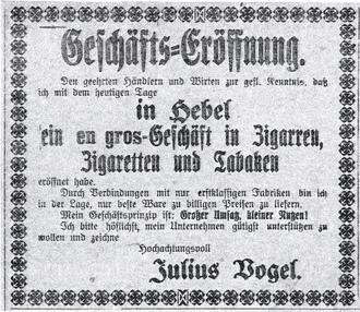 Der vierte Sohn der Vogels, Julius (Jhg. 1892), wanderte Mitte der 1930er Jahre, nach Auskunft seines mittlerweile verstorbenen Neffen Ludwig Hirschberg, nach Rio de Janeiro, Brasilien, aus. In den 1950er Jahren besuchte der Neffe Julius in den USA. Julius verstarb in Rio de Janeiro im Jahr 1981.