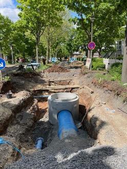 Ein zentrales Element des Bauvorhabens ist der neue Regenwasserkanal mit einem Durchmesser von DN700. Die großdimensionierte Leitung ist notwendig, um auch künftig bei Starkregenereignissen eine sichere Ableitung des Oberflächenwassers zu gewährleisten. Parallel dazu wird auch die Trinkwasserversorgungsleitung in diesem Bereich modernisiert.