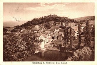 Postkarte von Falkenberg, ca. 1920, direkt am Berghang ist in der Mitte in zentraler Lage das Haus von Mendel Plaut Dannenberg deutlich zu erkennen