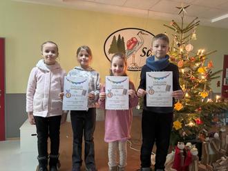 So kamen insgesamt von Oktober bis Mitte Dezember an der ganzen Schule ca. 35 kg Stifte zusammen. Um die Schülerinnen und Schüler zu motivieren, veranstalteten wir einen kleinen Wettbewerb und zeichneten die drei Klassen mit den meisten zusammengetragenen Stiften mit einer Urkunde aus. Die meisten Stifte sammelte die Klasse 4c, die allein 15 kg Stifte zusammenbrachte. Auf Platz 2 folgte die Klasse 4b mit 6,3 kg, auf Platz 3 kam die Klasse 1a mit 3,5 kg.