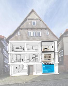 Gebäudebanner zu Visualisierung einer künftigen Nutzung in der Strauchgasse 4; Quelle RM Schwalm-Aue