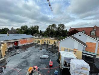 Seit Kurzem sind auch die Zimmerer und Dachdecker vor Ort aktiv, sodass die Überdachung bald ihre endgültige Form erhält. Die Fertigstellung rückt in greifbare Nähe.