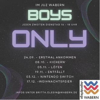 | Dienstag | 16:00 – 18:00 Uhr | Only Boys ** |